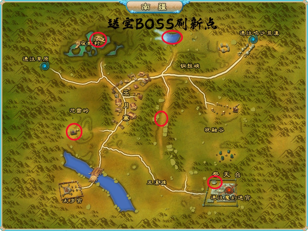 送宝BOSS-国宝熊猫 刷新时间:每天8:00-14:00,每2小时全图随机刷新一只 掉落金币:500金 |